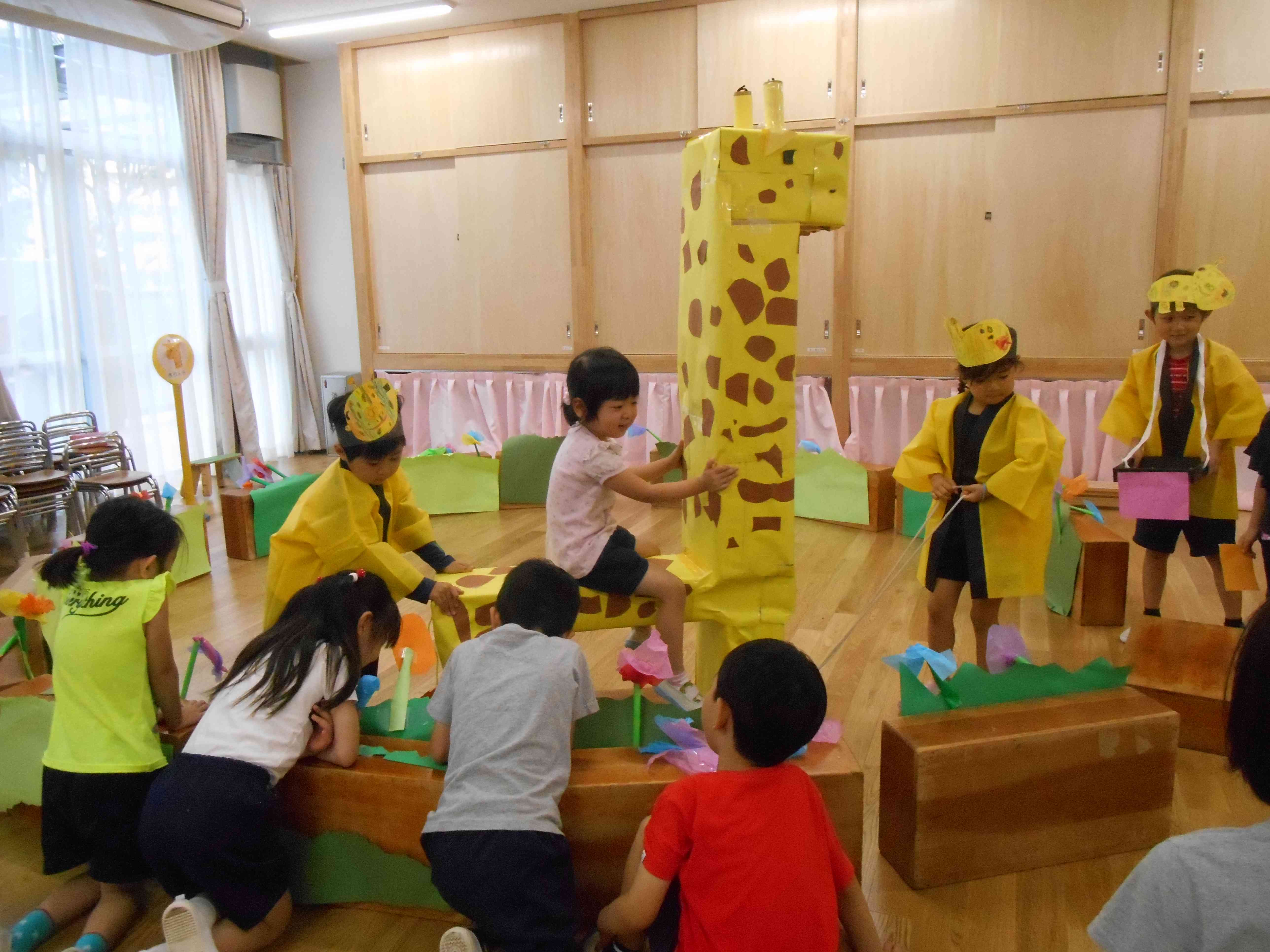 7月12日(金)になでしこ祭りが行われました。 年長組がお店を出したり、地域の方と一緒に盆踊りを楽しんだりしました。